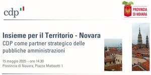 Novara - La Provincia di Novara e la Cassa Depositi e prestiti organizzano per il prossimo 15 maggio il convegno “Insieme per il territorio – Novara”, "momento divulgativo - spiegano il presidente della Provincia Federico Binatti e la consigliera delegata a Bilancio e Tributi Marina Grassani - per illustrare il ruolo strategico di Cdp come partner delle Pubbliche Amministrazioni. L’evento è ovviamente rivolto agli ottantasette Comuni del Novarese e rientra nella serie di attività formative da tempo messe in campo dalla Provincia per fornire agli Amministratori locali e ai tecnici strumenti preziosi per affrontare con ulteriore sicurezza la propria attività. E’ prevista la partecipazione del Gestore dei Sevizi Energetici e di Poste Italiane spa. Sarà un’occasione di confronto e di approfondimento rispetto alle nuove soluzioni di Cdp e degli altri partner dedicate allo sviluppo del Novarese".