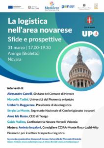 Il primo incontro si terrà a Novara (Sala Arengo del Broletto) il prossimo 31 marzo dalle 17 alle 19. L’incontro si aprirà con i saluti istituzionali del sindaco di Novara, Alessandro Canelli. A tenere il primo intervento sarà il Professor Marcello Tadini dell’Università del Piemonte Orientale, con un intervento dal titolo “La logistica del territorio novarese: evoluzione insediativa e specializzazione funzionale”. Successivamente, a prendere la parola sarà Umberto Ruggerone, Presidente di Assologistica, con un intervento dal titolo “Il rapporto fra le logistiche, formazione occupazione e territori alla luce delle nuove tecnologie”, seguito da Sergio Lo Monte, Segretario Nazionale di Confartigianato trasporti, con un intervento dal titolo “La logistica sostenibile nella realtà aziendale” e Anna Ida Russuo, Ceo di Trasgo, la quale effettuerà un intervento dal titolo “Case History: Azienda Trasgo s.r.l.”.