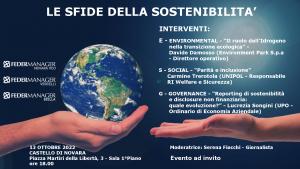 Novara - Federmanager Novara-VCO, Vercelli e Biella che rappresentano sui loro territori i manager delle aziende produttrici di beni e servizi stipulando contratti collettivi e garantendo servizi e tutele sindacali, previdenziali e di sanità integrativa, organizzano un convegno sull’attualissimo tema de “Le sfide della sostenibilità”. Il convegno si terrà dalle 18 alle 20 di giovedì 13 ottobre 2022 presso la prestigiosa sede del Castello di Novara.