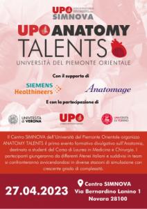 Novara - Giovedì 27 aprile, presso il Centro di simulazione e didattica innovativa SIMNOVA dell’Università del Piemonte Orientale, si terrà UPO ANATOMY TALENTS, il primo evento formativo divulgativo sull’Anatomia, destinato a studenti del Corso di Laurea in Medicina e Chirurgia. Responsabile Scientifico dell'evento è la Prof.ssa Francesca Boccafoschi, docente di Anatomia presso l'Università del Piemonte Orientale. L'edizione 2023 vede la partecipazione di quattro squadre provenienti dall'Università del Piemonte Orientale, dall'Università di Verona e dall'Università di Torino. I partecipanti, suddivisi in team e accompagnati da un docente coach, si confronteranno avvicendandosi in diverse gare con crescente grado di complessità sui temi di: sistema osteo-artro-muscolare, anatomia del cuore tramite dissezione, sistema cardio-circolatorio.