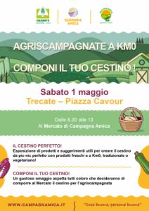 Trecate - Sabato 1° maggio 2021, dalle 8.30 alle 13.00 in piazza Cavour, si svolgerà l'ormai consueto appuntamento con l'Agrimercato di Campagna Amica, protagonista della filiera corta: sono numerosi i produttori agricoli presenti con le proprie specialità. In questa occasione Campagna Amica organizza l'iniziativa "Agriscampagnate a km0. Componi il tuo cestino!": verranno esposti i prodotti e verranno dati suggerimenti utili per creare il cestino da pic-nic perfetto a con prodotti a km0, sia tradizionale sia vegetariano. "Un'idea gustosa che sicuramente sarà apprezzata dai nostri concittadini - dichiara il consigliere incaricato alle Attività Produttive Patrizia Dattrino - Una novità adatta a questo periodo in cui finalmente si potrà fare qualche gita viste le riaperture previste".