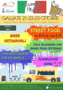 Galliate - Tutto pronto per un week end all'insegna della buona cucina e del divertimento a Galliate! Per la prima volta dal 21 al 23 ottobre arriva “Assaggia l'Italia” evento dedicato allo street food di qualità e alle birre artigianali. Associazione Experience con il patrocinio del Comune di Borgomanero porterà birrifici artigianali e cucine da tutta Italia con specialità da gustare in un clima di festa ed allegria in piazza Vittorio Veneto, proprio davanti al meraviglioso e caratteristico Castello Sforzesco. Durante la kermesse si potranno assaggiare, gnocco fritto, panini gourmet, panzerotti, curiosi “bastoni” di carne, specialità toscane, arrosticini e pannocchie, carne di fassona, focaccia con salumi umbri ed ancora panini con il polpo, primi piatti, cervo, tigelle , calamari e verdure pastellate e le irresistibili patatine fritte alla belga. Il tutto accompagnato da oltre 20 originali e profumate birre artigianali.