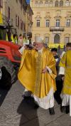 Biella - Trattori che lasciano le campagne e sbarcano in città, centinaia di agricoltori desiderosi di rendere omaggio al raccolto e grandi momenti di convivialità e di preghiera. Nutritissima la partecipazione...