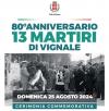 Vignale - Si svolgerà domenica 25 agosto la cerimonia di commemorazione per l’80° Anniversario dell’Eccidio dei 13 martiri di Vignale, caduti per la lotta di...