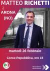 Arona - Il circolo del Pd di Arona-Oleggio Castello-Dormelletto informa che martedì 26 febbraio alle ore 15 sarà presente il sen. Matteo Richetti presso il gazebo PD di Arona in Corso Repubblica. "...