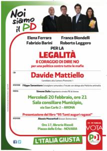 Mercoledì 20 febbraio ore 17 Novara – Libreria Rizzoli di piazza delle Erbe. Incontro con Davide Mattiello. Il candidato alla Camera nella lista Piemonte 1 presenta il libro “95 tanti auguri ragazzi”. Interverranno Elena Ferrara, Franca Biondelli, Fabrizio Barini e Roberto Leggero.