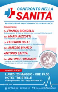 Briga Novarese - Anche il Sottosegretario Franca Biondelli e l'Assessore alla Sanità della Regione Piemonte Antonio Saitta parteciperanno lunedì sera, 23 maggio, alle 19, all'evento organizzato dall’“Associazione di iniziativa Parlamentare e legislativa per la salute e la prevenzione” presieduta dal Senatore Antonio Tomassini che si svolgerà a Briga Novarese e che affronterà la tematica del rischio clinico e responsabilità professionale; tema centrale del Disegno di Legge a prima firma Federico Gelli attualmente approvato alla Camera e in corso di esame in Commissione Sanità al Senato. Il DDL si pone come obiettivo quello di aumentare le garanzie e tutelare gli esercenti delle professioni sanitarie e, nello stesso tempo, assicurare ai pazienti la possibilità di essere maggiormente tutelati. Si tratterà di un breve convegno che si svolgerà lunedì 23 maggio all’hotel Tre Stelle in via Borgomanero, 185 di Briga Novarese e avrà inizio alle ore 19. Alla serata parteciperanno medici delle province di Novara, Vco e limitrofe. Interverranno l’On. Federico Gelli primo firmatario del DDL e deputato membro della Commissione Affari Sociali della Camera, il Sen. Amedeo Bianco, membro della Commissione Igiene Sanità del Senato, il Sottosegretario di Stato al Ministero della Giustizia Cosimo Ferri e il Sen. Antonio Tomassini promotore dell'iniziativa e Presidente dell'associazione di iniziativa parlamentare e legislativa per la salute e la prevenzione.