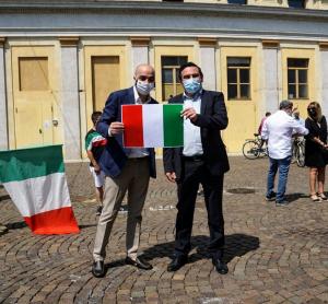 Novara - 2 giugno, centrodestra in piazza per dare voce a italiani. Basta promesse è tempo di risposte. “Oggi siamo scesi insieme agli altri partiti del centrodestra per dare voce a quei tanti italiani che questo governo ha dimenticato. Nel giorno della Festa della Repubblica, anche se in piena sicurezza e nel rispetto delle norme sanitarie, abbiamo voluto manifestare contro la politica di questo governo incapace di affrontare la grave emergenza sociale ed economica che si è aperta con l’epidemia di Covid-19”. A dirlo il senatore di Fratelli d’Italia Gaetano Nastri a margine della manifestazione del centrodestra a Novara in piazza Puccini.