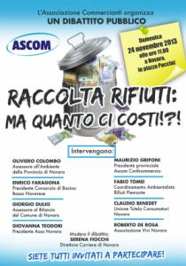 Novara - Domenica 24 novembre alle 11 in piazza Puccini a Novara si terrà un dibattito pubblico organizzato da Ascom. Dopo il primo incontro del 6 ottobre sulla chiusura di piazza Martiri, questa volta si parlerà della raccolta/gestione dei rifiuti urbani e del costo per imprese e famiglie, addirittura triplicato in molti Comuni della provincia di Novara in seguito all’applicazione della Tares. Hanno confermato la partecipazione anche l'assessore al Bilancio del Comune di Novara, Giorgio Dulio, e la presidente dell'Assa, Giovanna Teodori. Parteciperanno all’incontro: Oliviero Colombo - assessore all’Ambiente della Provincia di Novara, Enrico Faragona - presidente del Consorzio di Bacino Basso Novarese, Maurizio Grifoni - presidente provinciale Ascom, Fabio Tomei - Coordinamento ambientalista Rifiuti Piemonte, Claudio Benedet - Unione Tutela Consumatori, Roberto De Rosa - Associazione Vivi Novara. Modera il dibattito Serena Fiocchi, direttore del Corriere di Novara.