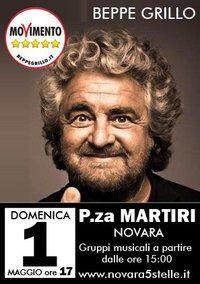 Novara - Una domenica pomeriggio con... Beppe Grillo. Il leader del Movimento a 5 Stelle sarà infatti a Novara domenica 1° maggio alle 17 in piazza Martiri. Dalle 15 in avanti la giornata sarà movimentata da gruppi musicali. L'accesso è libero.