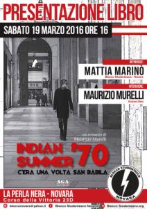 Sabato 19 marzo alle ore 16 presso La Perla Nera in corso della Vittoria 23D a Novara, il Blocco Studentesco presenterà invece il romanzo "Indian Summer '70", ospite l'autore Maurizio Murelli. "Sarà un viaggio nella piazza "nera" milanese degli anni '70, un'avventura fra il passato ed il presente - così Mattia Marinò, referente del Blocco Studentesco novarese e curatore dell'evento - un modo per conoscere meglio una parte della nostra storia recente e la gioventù di quegli anni. Questo sarà il primo di una serie di iniziative culturali che realizzeremo quest'anno e in cui non vogliamo solo approfondire un discorso storico che troppo spesso viene ignorato nelle scuole o su cui c'è molta confusione, ma vogliamo creare dei veri e propri momenti di confronto generazionale".