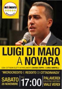 Novara - Riceviamo e pubblichiamo dalla sezione novarese del Movimento 5 Stelle: "Siamo lieti di ospitare Luigi Di Maio Vicepresidente della Camera dei Deputati, Presidente del Comitato di Vigilanza sull’Attività di Documentazione e membro della XIV Commissione Politiche dell’Unione Europea. Parleremo di Micro credito e Reddito di Cittadinanza due importanti progetti che da sempre contraddistinguono il Movimento 5 Stelle. Lo faremo insieme ad altri due cittadini eletti nelle Istituzioni, Davide Crippa portavoce e Vicepresidente del Gruppo M5S alla Camera dei Deputati e Carlo Martelli, portavoce e Vicepresidente del Gruppo M5S al Senato. Invitiamo la cittadinanza tutta a partecipare per non perdere una straordinaria occasione utile a conoscere più da vicino il Movimento 5 Stelle e in particolare due temi per noi fondamentali e necessari, inseriti sin da subito nel Programma Nazionale del Movimento, al fine di rilanciare un paese che continua a soccombere tra crisi economica e scelte politiche scellerate. Obiettivo, spostare l’asse da politiche per il profitto a politiche per il cittadino. Come? Ve lo racconteranno i nostri Portavoce sabato 28 novembre dalle ore 17 presso il Pala Verdi (Celestino Sartorio) di Novara in Viale Verdi".