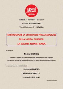 Il secondo, che si terrà martedì 27 febbraio, affronta il tema della sanità. Si intitola "Interrompere la strisciante privatizzazione della sanità pubblica: la salute non si paga" e vede la partecipazione di Nerina Dirindin, Senatrice e Capolista nel collegio plurinominale Piemonte 2 per Liberi e Uguali, già Direttrice Generale del Ministero della Sanità e in alcune regioni (Sardegna e Piemonte).