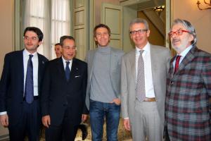 Novara - Emanuele Filiberto di Savoia si è recato questa mattina a Palazzo Natta per visitare la mostra "Le monete dei Savoia. Dal nodo savoiardo al Regno d'Italia", allestita presso il Salone d’Onore della Prefettura fino al prossimo 10 aprile. Un invito rivolto dal presidente della Provincia, Diego Sozzani, nel corso di un’incontro organizzato dai Club Rotary e Soroptimist di Novara, dove il Principe ha incontrato anche la vicesindaco Silvana Moscatelli. “Tornare a Novara è sempre un piacere - ha commentato Emanuele Filiberto - e, da appassionato di numismatica, non ho voluto perdere l’occasione per rivedere alcune delle stesse monete che spesso mio nonno mi mostrava quando ero ancora un bambino”. La mostra, del resto, ripercorre la storia della dinastia dei Savoia, una delle più longeve d’Europa, attraverso le monete che i protagonisti hanno coniato nei diversi periodi, dai Conti ai Duchi, dai Re di Sardegna ai Re d’Italia, dall’XI al XX secolo. Comprese quelle possedute dal nonno Umberto II, ultimo Re d’Italia. Emanuele Filiberto è stato accompagnato durante il percorso della mostra dal Prefetto di Novara, Giuseppe Amelio, e dal Presidente della Provincia, Diego Sozzani. “Abbiamo chiuso con questa piacevole visita le nostre celebrazioni per il 150° dell’Unità d’Italia. Più volte la storia dei Savoia si è intrecciata con quella di Novara e della sua provincia. Basti ricordare l’importanza della sala di Palazzo Bellini, sede storica della Bpn, dove Carlo Alberto abdicò in favore del figlio Vittorio Emanuele II, primo Re d’Italia”, ha ricordato Sozzani. Dopo aver ammirato i 379 pezzi esposti in Prefettura, il Principe di casa Savoia ha voluto rimarcare il ruolo che i piemontesi hanno avuto anche in queste celebrazioni. “Il Piemonte ha sospinto il sentimento dell’Unità nazionale oltre ogni aspettativa. Un risultato straordinario al quale hanno contribuito i tanti eventi organizzati in tutto il Paese. Un modo - ha concluso Emanuele Filiberto - per ricordare anche le donne e gli uomini che per unire l’Italia hanno donato la propria vita”.