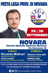 Novara - Sabato 29 e domenica 30 settembre sarà organizzata la Festa della Lega della provincia di Novara presso Il Circolo Operaio Agricolo della Bicocca, situato in via Sforzesca. Sarà possibile accedere dopo le 19. Oltre alla ristorazione ed alla musica ci saranno gli interventi dei membri del Governo. Sabato saranno presenti Riccardo Molinari, capogruppo del gruppo parlamentare della Lega alla Camera e Guido Guidesi, Sottosegretario di Stato alla Presidenza del Consiglio dei ministri con delega ai Rapporti con il Parlamento e alla democrazia diretta. Domenica, invece, interverranno il viceministro all'Economia Massimo Garavaglia e il sottosegretario alla Difesa Raffaele Volpi. Tutti gli interventi saranno moderati dalla giornalista Simona Arrigoni. In entrambe le sere sarà possibile incontrare alla festa anche i due onorevoli del territorio Marzio Liuni e Alberto Gusmeroli, il sindaco di Novara Alessandro Canelli e tutti gli amministratori della provincia.