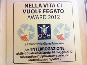 Novara - Lo scorso 29 novembre l’on. Gianni Mancuso ha ricevuto una targa di riconoscimento dall’Associazione Parlamentare per la tutela e la promozione del diritto alla prevenzione”, nell’ambito della giornata mondiale delle epatiti. Il Technical Report “Hepatitis B and C in the EU neighborhood” svela che l’Italia è il paese europeo con il maggior numero di soggetti HCV positivi e detiene il triste primato di mortalità in Europa per tumore primitivo del fegato. “In realtà - ha commentato Mancuso - sono stato premiato per aver fatto il mio dovere: ho presentato un’interrogazione al Ministro della Sanità, chiedendo di sollecitare AIFA, che latitava nell’approvazione di due farmaci specifici inibitori della proteasi (Telaprevir e Boceprevir). Come uomo, e come Medico, non posso che essere molto sensibile alle tematiche legate alla sanità e alla sua efficienza, anche umana: una persona già sofferente per la malattia deve avere la certezza e la serenità che venga fatto tutto il possibile per il suo stato, sia dal punto di vista medico, che umano, che legislativo. Sono io, quindi – conclude l’onorevole – che ringrazio le associazioni che ogni giorno, mentre tutelano i diritti delle persone malate e delle persone sieropositive, diffondono informazione e promuovono la cultura della prevenzione su tutte le forme di epatite”.