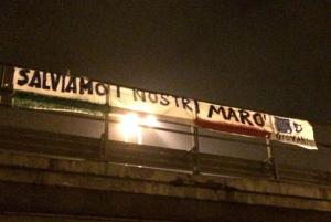 Novara - Ben otto metri di striscione, i caratteri tassativamente blu - colore che contraddistingue il partito- ed il tricolore che non può mancare. Il gesto forte ed eclatante lo fanno i giovani del "Nuovo CentroDestra" che, nella notte tra mercoledì 22 e giovedì 23 gennaio , espongono lo striscione: "Salviamo i nostri marò" sul cavalcavia vecchio di Sant'Agabio, zona di massima visibilità. "Occorre in tutti i modi - spiegano i giovani del NCD - anche con quelli meno convenzionali, far sentire la vicinanza degli italiani ai due militari, Massimo Latorre e Salvatore Girone che, e questo è il colmo, non solo sono ingiustamente tenuti in stato di fermo in India da più di 700 giorni, ma potrebbero rischiare anche una assurda pena capitale. Serve assolutamente una decisa campagna di mobilitazione nazionale unita alla sincera speranza che presto i nostri due Marò possano essere rilasciati e tornare così nell'Amata Patria a riabbracciare le proprie famiglie".