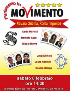 Novara - Saranno ben 6 i parlamentari del Movimento 5 Stelle che sabato prossimo, 8 febbraio, a partire dalle ore 14,30, si ritroveranno presso l’Hotel Europa, in corso Cavallotti 38, per incontrare la cittadinanza novarese nell’ambito della kermesse “Parlamento in MoVimento”. E non saranno solo gli eletti locali, ovvero l’oleggese Davide Crippa, vicepresidente della X Commissione (Attività Produttive, Commercio e Turismo) alla Camera dei Deputati, e il novarese Carlo Martelli, vicepresidente della 13ª Commissione permanente (Territorio, ambiente, beni ambientali) al Senato, a essere presenti all’incontro.