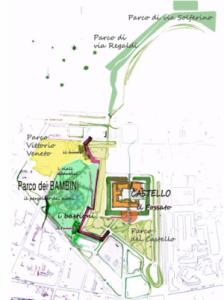 "Il progetto - si legge nel documento - interessa il sistema costituito dal Castello-Parco dei Bambini-Viali e Baluardi della città di Novara e attua un processo di rigenerazione degli spazi pubblici urbani trasformandoli in spazi strutturati e accoglienti, giocosi, educativi, permeati da un rinnovato sistema di valori estetici e creativi, continuativamente arricchiti dalle attività pratiche e spontanee dei suoi abitanti. Il Parco dei Bambini diventa il cuore del verde pubblico e il Castello si apre alla città con nuove funzioni e dinamiche. Il Parco diventa un paesaggio poetico da esplorare e conoscere giocando e guardando: racconterà le storie del mondo attraverso immagini, parole e suoni, attraverso la voce degli alberi, i primi protagonisti della sua storia. Avrà ampi spazi aperti e liberi per le attività spontanee tra grandi e bambini. Parco dei bambini la Geografia e il legame della città con il territorio - Viali del mondo (mappamondo/seduta, nastro/tubo) - Alberi parlanti (percorso didattico) - Pergolato dei suoni - Casa sull’albero/casa grembo - Teatro del mondo - Ristrutturazione di manufatti esistenti (tunnel, colline, voliera, gazebo) - Messa in sicurezza dei Bastioni spagnoli della città - Manutenzioni (percorsi a raso, prato, aiuole, preesistenze). La natura offre materiali e scenografie che il pubblico scopre e gode, finché la natura non se le riprende. Il progetto propone una relazione Uomo-Natura che non sia più prevaricazione, ma rispetto, dialogo, collaborazione e ricerca di nuove possibilità di intervento in spazi aperti e naturali. Coniuga intervento estetico e creatività. La città di Novara ha storicamente saputo essere anticipatrice dello studio e dell’insegnamento del design e delle arti applicate con la significativa esperienza della Scuola Politecnica di Design, SPD-1954 in particolare con la figura di Nino Di Salvatore (Verbania 1924- Milano 2001). A Novara, Nino di Salvatore fu fondatore e direttore della prima scuola in Italia per il design e la comunicazione: fondò il “Centro Studi Arte/Industria” che sarebbe diventato Scuola di designer, primo Istituto in Italia didatticamente caratterizzato dai principi della gestalt psychologie. Reinterpretare, Riqualificare, Ridisegnare gli spazi pubblici non progettati e i percorsi “tra le cose” attraverso il lavoro dei bambini rielaborato da professionisti e finalizzato alla creazione di processi artistici creativi innovativi, strutturati e applicati allo spazio pubblico. Collegare direttamente la scuola allo spazio pubblico della città, attraverso laboratori progettuali e didattici finalizzati alla trasformazione dell’eterogeneità delle idee in progetti concreti. Raccontare la città e i suoi abitanti realizzando piccole architetture, manufatti che siano il risultato della comunicazione partecipata tra bambini e adulti con la città. Realizzare un Museo dei Bambini a cielo aperto".