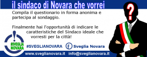 Novara - Riceviamo e pubblichiamo dal laboratorio Sveglia Novara: "Sveglia Novara è nato per essere un laboratorio vero per immaginare ma sopratutto progettare una città migliore, con il tentativo di riavvicinare i cittadini alla "cosa pubblica" affinchè il cambiamento che auspichiamo per la città cresca dal basso e per una volta i cittadini siano finalmente protagonisti delle scelte per il futuro del posto in cui vivono. Per farlo, lanciamo l'iniziativa Il sindaco di Novara che vorrei, fornendo così un reale strumento di democrazia diretta: un questionario con il quale i cittadini potranno esprimere le proprie preferenze nei confronti del futuro sindaco di Novara. Inoltre, scegliendo le risposte per ogni argomento, i novaresi potranno delineare non solo i tratti del sindaco ideale, ma anche le priorità che dovranno guidarne l'azione amministrativa del mandato. Infatti abbiamo semplicemente individuato i temi su cui un sindaco può incidere e le cui scelte influiscono sulla nostra vita quotidiana e futura. Sabato 28 e domenica 29 marzo allestiremo il nostro gazebo in piazza delle Erbe dove, chi vorrà, potrà compilare i primi questionari. Sono numerosi anche gli esercizi commerciali che si sono già resi disponibili per essere punti di raccolta e di distribuzione dei moduli e nei prossimi giorni pubblicheremo l'elenco. Con le risposte che raccoglieremo potremo così elaborare e rendere pubblico il profilo del sindaco di Novara che vorrebbero i cittadini. Siamo sicuri che sarà grande la partecipazione a Il sindaco di Novara che vorrei, che si rivelerà uno strumento innovativo che permetterà alla comunità di tracciare le caratteristiche del sindaco e della città che sognano".