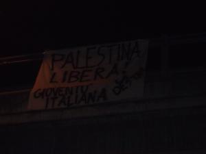 Novara - I militanti di Gioventu' Italiana hanno affisso nella notte tra il 23 e il 24 novembre uno striscione con su scritto "Palestina libera!", nel corso di un'iniziativa nazionale del movimento per manifestare la propria "solidarietà al popolo palestinese, sconvolto e annichilito da otto giorni di bombardamenti a tappeto che hanno avuto come obiettivi anche e soprattutto inermi civili, spesso donne e bambini. La tregua di questi giorni è stata unilateralmente imposta da Israele, che dopo aver distrutto palazzi governativi e centri d'informazione in Palestina non ha di fatto più nulla da bombardare. Dal punto di vista politico la Palestina oggi non esiste più, per la gioia dei ministri israeliani che nei giorni scorsi si auguravano di poter "riportare Gaza nel medioevo", riducendo la striscia al caos più totale, negando l'autodeterminazione ai palestinesi. Oggi più che mai, la Palestina chiede libertà!".