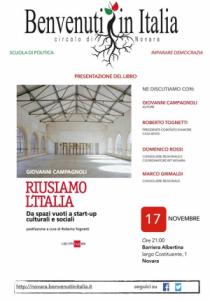 Questi sono solo alcuni degli spunti che ci permetteranno di presentare il libro "Riusiamo l'Italia" (Gruppo 24 ore, Milano, 2014). Saranno nostri ospiti infatti l'autore Giovanni Campagnoli, Roberto Tognetti, presidente del comitato d'Amore per Casa Bossi, e Marco Grimaldi, Consigliere Regionale del Piemonte. Introduce l'incontro Domenico Rossi, coordinatore del circolo novarese di Benvenuti in Italia. Appuntamento per lunedì 17 novembre, alle ore 21, presso la Barriera Albertina in Largo Costituente 1 a Novara.
