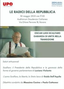 Novara - Quarto incontro de Le radici della Repubblica organizzato dall'Istituto Storico della Resistenza e il Dipartimento per l'Economia e l'Impresa dell'Università del Piemonte Orientale di Novara. Dopo Alcide De Gasperi, Luigi Einaudi e Nilde Iotti, l'appuntamento che si terrà venerdì 30 maggio alle ore 17 presso l'Auditorium Gaudenzio Cattaneo del Campus universitario è dedicato alla figura di Oscar Lugi Scàlfaro ed ha come titolo "Oscar Luigi Scàlfaro. Garanzia di unità nella transizione". Relatori dell'incontro saranno l'Onorevole Luciano Violante e il Quirinalista Guido Dell'Aquila. Coordineranno i lavori il professor Massimo Cavino direttore del Dipartimento per l'Economia e l'Impresa dell'Università del Piemonte Orientale di Novara e Paolo Cattaneo, Presidente dell'Istituto Storico della Resistenza "Piero Fornara".