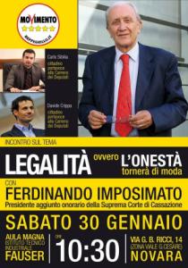 Novara - Riceviamo e pubblichiamo: "Il Movimento 5 Stelle di Novara è lieto di ospitare il Presidente Onorario della Suprema Corte di Cassazione, Ferdinando Imposimato in occasione dell’incontro pubblico aperto a tutti i cittadini, ed avente come tema la legalità, le riforme costituzionali e difesa della Costituzione. Un appuntamento importante quindi, dove parleremo di quelle tanto discusse riforme costituzionali che stanno concretamente minando la democrazia nel nostro Paese. Lo faremo attraverso un ospite illustre. Il Giudice Ferdinando Imposimato infatti si è sempre occupato di lotta alla mafia e alla camorra, oltre che di terrorismo. Oggi si occupa di diritti umani ed è uno dei più stimati intellettuali della scena sociale odierna. Con lui ci saranno il nostro portavoce alla Camera dei Deputati, nonché attuale Capogruppo del Movimento 5 Stelle, Davide Crippa e il cittadino portavoce presso la medesima, Carlo Sibilia e il Capogruppo in Consiglio Regionale Giorgio Bertola, oltretutto Presidente della Commissione speciale di indagine per la promozione della cultura della legalità e del contrasto ai fenomeni mafiosi. Invitiamo tutta la cittadinanza a partecipare. L’incontro si svolgerà sabato 30 gennaio alle ore 10,30 presso l’Aula Magna dell’Istituto Fauser in via G.B. Ricci n°14 a Novara".