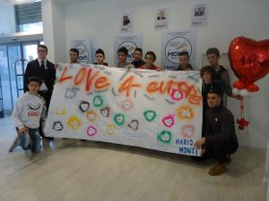 Novara - E’ stato presentato giovedì pomeriggio negli spazi di Scelta Civica Point di piazza Martiri 4 il murales “Passione per l’Italia-Love 4 Europe”. L’opera, realizzata da un gruppo di studenti delle scuole superiori novaresi, accompagnerà l’arredo del Comitato elettorale sino alle elezioni del 24 e 25 febbraio. Realizzato in diretta dai ragazzi, il murales sarà appeso nei locali di Scelta Civica Point come segnale dell’impegno dei candidati e della lista al mondo giovanile e della scuola.