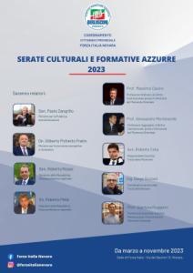 Novara - Il movimento politico di Forza Italia Novara, coordinamento cittadino e provinciale, annunciano le "serate culturali e formative azzurre", una serie di incontri, da marzo a novembre 2023, con tanti ospiti e relatori, per coinvolgere la cittadinanza e formare la classe dirigente. Fra tutti, il ministro per la Pubblica Amministrazione Paolo Zangrillo, e il ministro per l'Ambiente e la sicurezza energetica Gilberto Pichetto Fratin, oltre che al Senatore Rosso, il deputato biellese Roberto Pella. Esponenti del mondo dell'università come il Prof. Cavino, il Prof. Monteverde e il Prof. Ruggiero, e due esponenti di punta del movimento locale come Diego Sozzani e Roberto Cota.