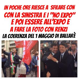Novara - "Anche il 1° maggio il Sindaco Ballarè è riuscito a sorprenderci - commenta Ivan De Grandis, fondatore del movimento "NO MUSA" e portavoce del Laboratorio Civico "Sveglia Novara" - al mattino alla testa del corteo della sinistra e dei NO EXPO per le vie del centro a cantare "bella ciao" e "bandiera rossa", a parlare di posti di lavoro e di industrie quando oltretutto solo poche settimane fa spiegava in un'intervista che non bisogna più puntare sull'industria ma sui servizi, e appena un paio di ore dopo, lasciati a Novara i compagni, corre a pochi chilometri da Renzi per l'inaugurazione di Expo. Insomma la sinistra novarese non perde di sottolineare ogni giorno i problemi del centrodestra, ma la verità è che è la stessa sinistra novarese, impersonificata nel Sindaco Ballarè, a non essere né carne né pesce. Infatti in città, viste le prossime elezioni, il Primo Cittadino sorride in un corteo chiaramente NO EXPO e anche un po' anacronistico, lontano certamente dal renzismo e poi si lancia sorridente alla grande Fiera di Rho. Chissà se ha detto al Premier Renzi che prima di andarlo a trovare ha sfilato con i NO EXPO, e chissà cosa gli avrà risposto lui... Non c'è che dire - conclude De Grandis - Ballarè ha proprio perso la bussola".