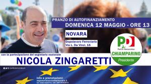 Novara - Dalla segreteria provinciale del Pd informano che domenica 12 maggio alle ore 13 presso il Dopolavoro Ferroviario di Novara in via Leonardo da Vinci n. 16, in occasione del pranzo di autofinanziamento, sarà presente il Segretario nazionale del PD Nicola Zingaretti. Sempre domenica 12 Giuliano Pisapia, capolista PD alle europee circoscrizione nord-occidentale, sarà presente a Galliate alle ore 18.30 presso la Sala due Colonne di Piazza Martiri e ad Arona alle ore 20.30 presso l'Hotel Atlantic, Corso Repubblica n. 124.