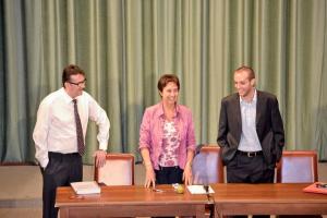 Trecate - Non sarà stato ai livelli di Kennedy-Nixon e nemmeno di Prodi-Berlusconi, ma il confronto organizzato in un teatro comunale stipato all'inverosimile la sera di lunedì 23 maggio passerà nella storia di Trecate. Innanzitutto perché sul palco c'erano due giovani e validi candidati, Binatti per il centrodestra e Ruggerone per il centrosinistra (e questo fa ben sperare, qualsiasi sia il risultato delle urne, per l'attività amministrativa in Comune tanto in maggioranza quanto in opposizione). E poi perché ancora una volta i trecatesi hanno dimostrato grande senso di civiltà: tanto calore, tanto caldo (nel senso di afa...), tanta passione, ma nessuno scontro né verbale né tantomeno fisico. Insomma una bella serata di politica e di amministrazione, ottimamente gestita da Serena Fiocchi, direttore del Corriere di Novara, chiamata - da 'esterno' come nei derby che si rispettano - ad arbitrare questo incontro-scontro.