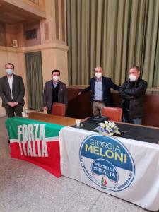 Trecate - Conferenza stampa in tempi di pandemia, distanziati, registrati e monitorati, la mattina di sabato 27 marzo nel Teatro Comunale in piazza Cavour di Trecate. Presenti i big del centrodestra novarese: il sen. Gaetano Nastri (Fratelli d'Italia), on. Marzio Liuni (Lega) e Massimo Marcassa (Forza Italia); ma anche tanti consiglieri, assessori e persone vicine come: Varone, Canetta, Simeone, Dattrino, Bricco, Coraia, Ingold, Cigolini e Pasca. E anche Crivelli (presidente del Consiglio comunale di Trecate e consigliere provinciale delegato all'Edilizia scolastica), Volontè e soprattutto l'ex vice sindaco Giorgio Capoccia. Tutti al Comunale per confermare, ribadire o ri-proporre il proprio appoggio alla candidatura bis del sindaco in carica Federico Binatti.