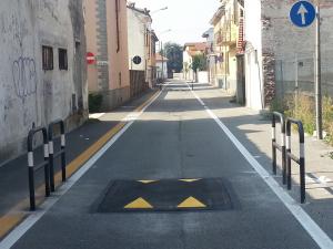 Dissuasori di via Rosselli: per l’assessore Mario Zeno sono stati piazzati i cosiddetti ‘quadretti’ (nella foto) per limitare la velocità in questa strada considerata eccessiva e molto pericolosa per i residenti, alla luce del fatto che negli ultimi 5 anni si sono verificati ben 17 incidenti stradali.