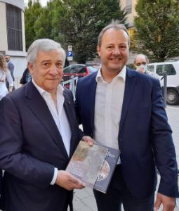 Cerano - Sabato 10 luglio l'on. Antonio Tajani, presidente del Parlamento Europeo fino al 2019 ed attuale europarlamentare e vicepresidente del Partito Popolare Europeo (PPE), ha visitato la città di Novara; è stata l'occasione per diversi Amministratori locali di incontrarlo e parlargli del territorio. "Da Ceranese - racconta Alessandro Albanese, vice sindaco di Cerano - ovviamente mi sono soffermato sulla figura del patrono Beato Pacifico che caratterizza in modo significativo il nostro paese dove da sempre vi è una forte devozione nei suoi confronti; ho donato all'on. Tajani due delle diverse pubblicazioni che negli anni sono state realizzate sul Beato Pacifico che lo descrivono anche dal punto di vista storico, nello specifico "Vita e tempi del Beato Pacifico da Cerano" di Giovanni Garzoli e "Il Beato, lo Scurolo e la Chiesa parrocchiale" ad opera della Famiglia Ceranese G.B.Crespi. L'omaggio è stato particolarmente gradito da Antonio Tajani al quale, con una battuta, ho raccomandato di portate un po' di Cerano e del suo Beato in Europa".