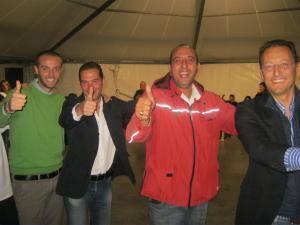 Trecate - Il tempo tutt'altro che clemente ha tenuto lontano il grande pubblico che solo 24 ore prima aveva riempito l'area delle feste. Discreta comunque la partecipazione di persone alla festa di chiusura della campagna elettorale di Federico Binatti (centrodestra), che al ballottaggio se la vedrà con Ruggerone - ufficialmente - e soprattutto contro gli 'amici' del centrodestra degli schieramenti a lui avversi, che attraverso sms e passaparola stanno chiedendo al loro elettorato di astenersi dal voto e di non presentarsi alle urne nella due giorni di elezioni. "Ne abbiamo subite di tutti i colori ma non abbiamo mollati mai. Noi siamo il centrodestra, perché noi siamo con la gente lontani dalle logiche dei partiti e dei politicanti che non hanno a cuore il bene della gente comune" hanno detto Binatti e il consigliere regionale Pdl Roberto Boniperti. Da notare che la festa è stata impreziosita dalla partecipazione del Dj Ciskoman Cardamone, che - abbandonati i panni di candidato della Lista Giov@ni - si è messo alla consolle per far ballare il pubblico nella tensostruttura.