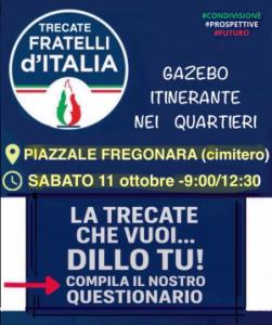 Trecate - Riceviamo e pubblichiamo dalla sezione trecates di Fratelli d'Italia: "Partito il gazebo itinerante. 'La Trecate che vogliamo' arriva nei quartieri. Dopo il successo del gazebo in piazza, continua l’iniziativa, con cui stiamo raccogliendo idee, proposte e punti di vista dei cittadini per costruire insieme il nostro programma per il futuro di Trecate. Da questa settimana il gazebo diventa itinerante: saremo presenti nei diversi quartieri della città per incontrare direttamente i cittadini, ascoltare le loro esigenze e raccogliere i questionari che tanti trecatesi hanno già compilato con entusiasmo. L’obiettivo è semplice ma fondamentale: dare voce a tutti. Ogni suggerimento, ogni segnalazione, ogni proposta è preziosa per costruire insieme una città più vicina alle persone, più attenta ai bisogni reali, più vivibile e partecipata. Vi invitiamo a venirci a trovare, compilare il questionario e raccontarci la vostra idea di Trecate: la Trecate che vogliamo, la costruiamo insieme!"