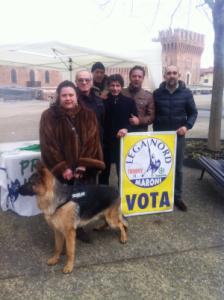 Nella foto: Corrado Frugeri (candidato al Senato per la Lega Nord) con alcuni militanti della sezione di Galliate.