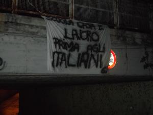 Trecate - Nella notte tra mercoledì 26 e giovedì 27 Settembre è apparso appeso nel sottopasso in direzione Trecate sud uno striscione recante la scritta “scuola, casa e lavoro prima agli italiani” e numerosi volantini hanno tappezzato la città a ribadire il concetto della precedenza agli italiani.