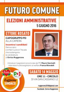 Sabato 14 maggio alle ore 11,00 i candidati incontrano l'On Ettore Rosato, capogruppo PD alla Camera, presso il Circolo di via San Cassiano 12 (nella foto).