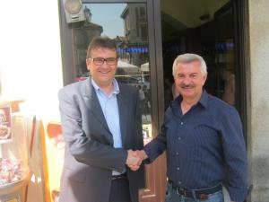 Trecate - Incontro al Caffè Sassi alle 10.30 di venerdì 20 maggio per una conferenza convocata nemmeno un'ora prima. Enrico Ruggerone, candidato sindaco per il centrosinistra, annuncia il suo 'apparentamento' con Giancarlo Rosina, che al 1° turno delle elezioni ha ottenuto un lusinghiero 6,17% e 623 voti. Alle cinque liste che avevano appoggiato Ruggerone il 15 e 16 maggio (Pd, Idv, Nel cuore di Trecate, Sinistra trecatese e Pensionati, invalidi e giovani) si aggiungeranno quelle portate in eredità da Rosina: Io amo Trecate (il cui leader nazionale e fondatore è l'ex vice direttore del Corriere della Sera Magdi Cristiano Allam) e La svolta trecatese (guidata invece dall'esterno da Francesco Saracino, già Forza Italia prima e Pdl poi, e tra i firmatari della mozione che ha portato alla caduta prematura della Giunta Zanotti Fragonara). "Il nostro è un accordo - hanno spiegato Rosina e Ruggerone - basato sui programmi e sulle emergenze da risolvere soprattutto nei primi 100 giorni di governo, in ambito sociale: dalla scuola ai giovani, dalla terza età alle famiglie. Con coerenza abbiamo stilato un programma comune per dare risposte concreete ed immediate ai problemi della città. Siamo inoltre convinti che la squadra uscita dal responso delle urne sia in grado di ben governare per i prossimi 5 anni in modo coeso, unito ed efficace. Di certo lo stesso non si può dire per le liste che appoggiano Binatti".