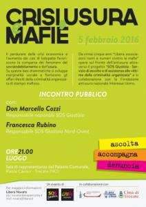 Trecate - Come dimostrano le operazioni degli ultimi tempi, l'usura è un problema presente anche nel nostro territorio. Libera Novara ha deciso di dedicare proprio a questo tema il primo dei 100passi verso il 21 marzo 2016. Venerdì 5 febbraio alle ore 21.00, presso il Palazzo Comunale di Trecate, sarà nostro ospite Don Marcello Cozzi, responsabile nazionale di SOS Giustizia (il progetto attraverso cui Libera accompagna le vittime di usura ed estorsione) e presidente della fondazione Interesse Uomo. Nel pomeriggio dello stesso giorno inoltre la Camera di Commercio di Novara, che da quest'anno sostiene insieme a Fondazione BPN il lavoro di ricerca dell'Osservatorio provinciale sulle mafie, ospiterà una tavola rotonda organizzata da SOS Giustizia per gli addetti del settore antiusura dell'area Nord-Ovest del nostro Paese. Un primo passo, questo novarese, in vista di un forum nazionale per una proposta di riforma legislativa.