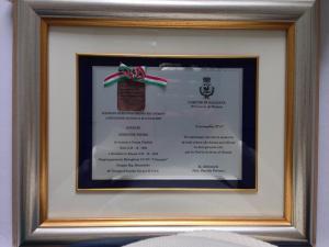 Galliate - Il prossimo 3 novembre, durante il corteo per la Festa dell Forze Armate, sarà consegnata la piastrina del soldato Pietro Andreone, caduto in Russia il 22 dicembre 1942, ai famigliari ancora in vita. "La piastrina - spiega il sindaco Davide Ferrari - è stata ritrovata pochi anni fa nelle zone che furono teatro della battaglie del fronte russo e precisamente a Miciurinsk. Un caduto trova la sua pace". Nella foto la targa con la piastrina.