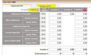 A questo punto il programma ha già recuperato la vostra situazione catastale: vi mostra il valore catastale già aggiornato con la rivalutazione delle rendite, le classi catastali e le percentuali di possesso. Vi indica già qual'e' considerato prima casa e la relativa detrazione. Non vi resta che aggiornare le detrazioni relative ai figli minori di 26 anni e residenti. Potete poi scegliere il numero di rate in cui pagare (fino a 3 per la prima casa, fino a 2 per gli altri fabbricati e terreni). Ultima cosa da fare, stampare un riepilogo del calcolo che potrà esservi utile, oppure stampare direttamente l'F24 che potete portare in banca per il pagamento.
