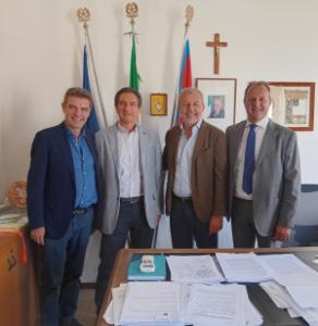 Cerano - In occasione della sua presenza per il convegno "Il nostro territorio tra terra e acqua" di sabato 28 giugno il portavoce nazionale di Forza Italia on. Raffaele Nevi in mattinata non ha perso l'occasione per una visita in paese, con una passeggiata nelle centrali piazze Crespi e Libertà, dove non è mancato un caffè insieme ad alcuni cittadini ceranesi, una visita alla chiesa parrocchiale con lo scurolo del patrono Beato Pacifico e ovviamente una tappa presso il Comune dove vi è stato un confronto con il sindaco Mauro Cesti su tematiche legate alla quotidiana attività amministrativa. "Da Ceranese - afferma Alessandro Albanese, assessore comunale e segretario FI Cerano - oltre che da amministratore non posso che essere soddisfatto per l'attenzione che l'on. Nevi ha riservato al nostro paese, dimostrazione di "contatto" importante tra una piccola realtà locale e chi svolge attività politica a livello nazionale".