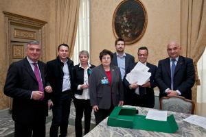 Torino - “Porteremo questa settimana in Ufficio di presidenza l’importante petizione che verrà assegnata al più presto alla competente Commissione Sanità”. Con queste parole il presidente del Consiglio regionale, Valerio Cattaneo, ha chiuso l’incontro con la delegazione del Comitato per unire gli Ospedali di Borgosesia e Borgomanero. L’incontro svoltosi il 12 marzo nella pausa dei lavori d’Aula, è servito anche per portare le 10 mila firme della petizione popolare promossa dal Comitato direttamente nelle mani di Cattaneo.