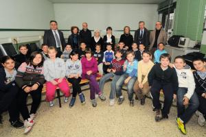Dida foto: i promotori del progetto con la classe V A della scuola primaria Giovanni XXIII di Novara