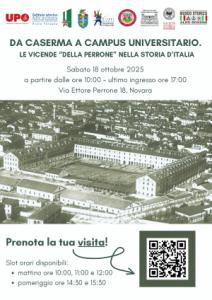 La giornata di visite guidate sarà preceduta da un importante momento di approfondimento: martedì 14 ottobre 2025, alle ore 17.30, presso l’Aula CP01 del Campus “Perrone”, verrà presentato il volume “Da caserma a campus universitario. Le vicende ‘della Perrone’ nella storia d'Italia”, edito da Società Storica Novarese in collaborazione con il DISEI. Un'occasione per approfondire i risultati della ricerca storica alla base dell'intero progetto.