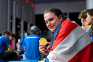 Novara - Scende dal pullman di ritorno da Bolzano tra gli applausi, ha il viso segnato dalla stanchezza ma molto più dalla soddisfazione e dalla felicità. Si chiama Davide Vella, è uno studente appena qualificato di Enaip Novara ed è il vincitore della medaglia d’oro nella competizione nazionale di Grafica Multimediale WorldSkills Italy 2023. Si tratta della vetrina più varia e completa delle professioni a livello italiano, dove 140 studenti hanno gareggiato in 25 mestieri diversi. Tre giorni di prove estenuanti, dove Davide, preparato e accompagnato dalla sua tutor Marika Leonardi, ha dato il massimo, esprimendo tutta la sua creatività e dimostrando tutte le competenze acquisite durante il percorso di studi e l’esperienza di stage.